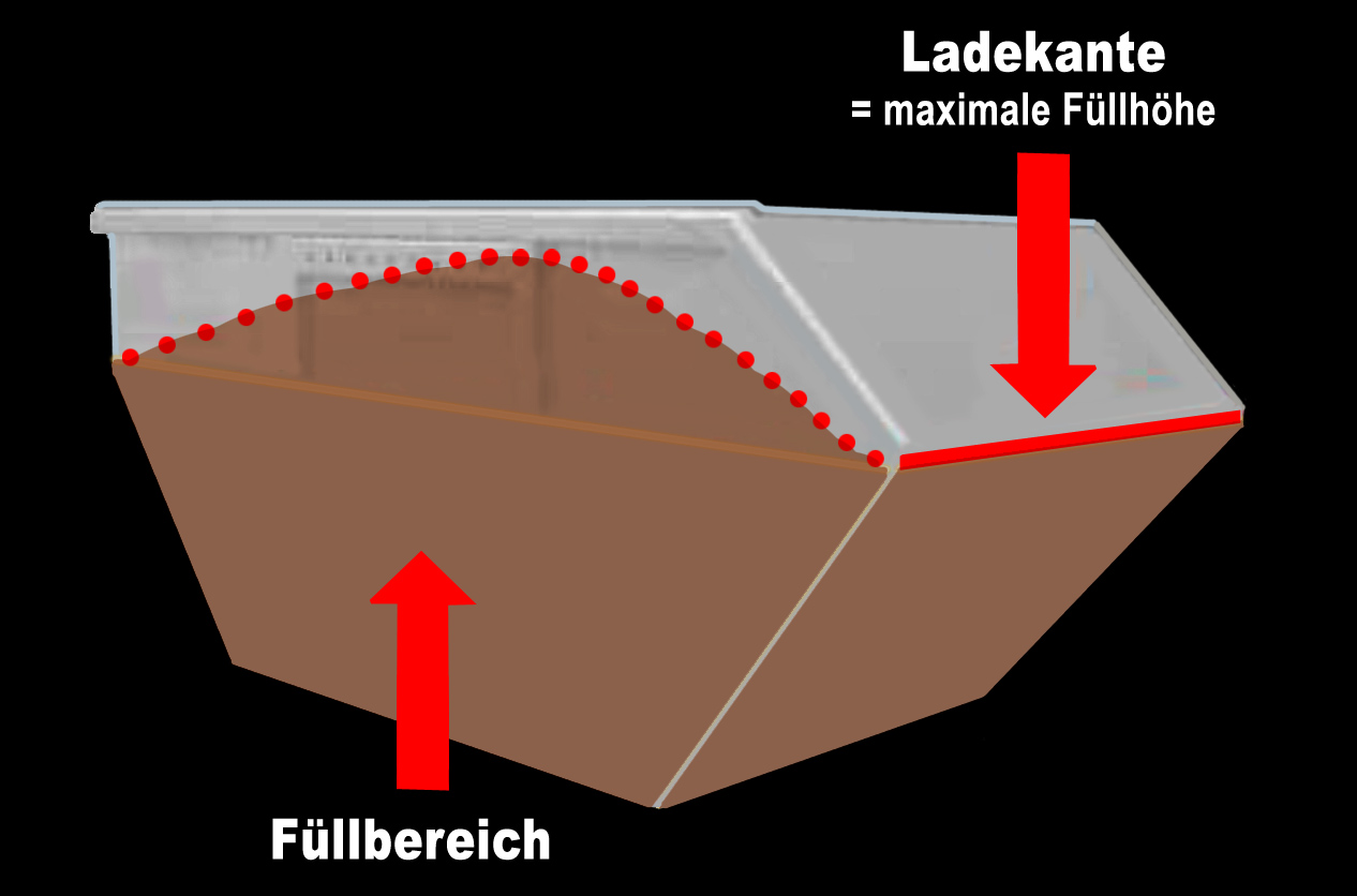 Ansonsten besteht die Gefahr, dass das Kipperfahrzeug wegen des zu hohen Gewichtes (Überladung) den Container nicht mehr anheben und aufladen kann. Dies ist gerade bei besonders schwerem Material, insbesondere bei Steinen, Abbruchmaterial und Erdaushub zu beachten. In den Container dürfen nur, die bei Auftragserteilung genannten Abfälle, eingefüllt werden.